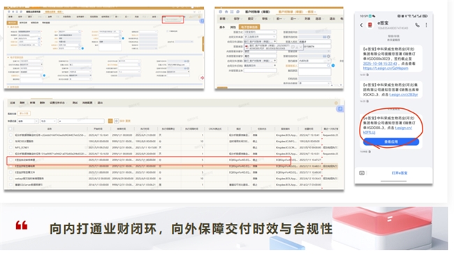 营销场景的复杂度更高一些。荣威生物面临农业行业的季节性特点,签署需求集中在特定时段,量大且时间紧。通过金蝶电子签章方案,系统通过套打模板自动生成销售订单、出库单、欠款合同,支持批量发起和签署,把签署环节嵌入到从订单到发货、回款的业务闭环中。
